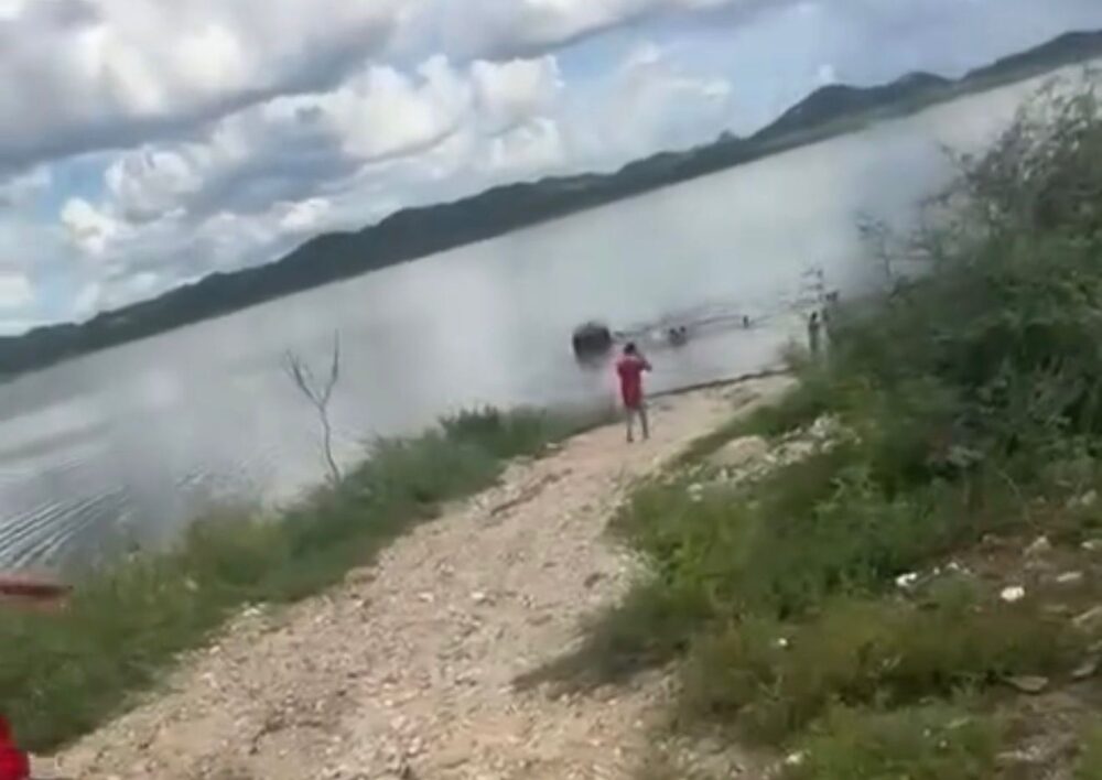 A retirada do veículo do interior do açude estava prevista para ocorrer na manhã desta segunda-feira (9).